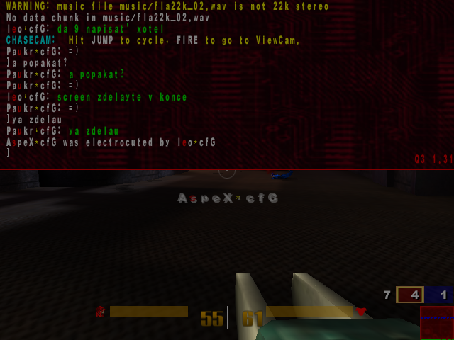 не нажимай кнопку!!! наш клан - дружный коллектив, каждый участник которого играет ради своего же удовольствия. Мы не задротствуем за квакой сутками, у нас нет цели стать супер-пупер-мега.... топовым кланом, и это позволяет нам выделяться среди остальных кланов. © Aspex ...Компьютер не подчиняется законам физики. Только в нём глюки возникают из ничего, файлы исчезают в никуда, а объём измеряется в метрах и называется весом...
